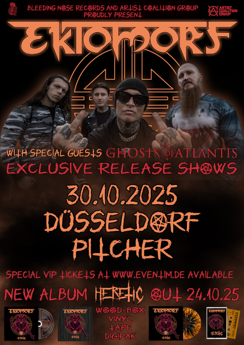 EKTOMORF – HERETIC RELEASE SHOWS 2025 Intensiv. Persönlich. Einmalig. Am 24. Oktober 2025, pünktlich zu Zoli Farkas’ 50. Geburtstag, erscheint das neue EKTOMORF-Album HERETIC, ein brutales, kompromissloses Statement. Geschrieben aus Schmerz, Verlust und purer Wut. Es ist kein normales Album. Es ist das ehrlichste, das Zoli je gemacht hat. Kein Konzeptalbum, kein Kalkül, sondern eine direkte, unverfälschte Abrechnung mit der Welt. Exklusiv zur Veröffentlichung von HERETIC spielt EKTOMORF im Oktober 2025 eine ganz besondere und streng limitierte Reihe von Release Shows. Jede einzelne dieser Shows ist ein einmaliges Live-Erlebnis, das so nie wieder stattfinden wird. Für diesen Anlass hat die Band eine exklusive Setlist zusammengestellt: neue Songs von HERETIC, kombiniert mit selten gespielten Songs aus der Bandgeschichte und natürlich den großen Klassikern. Diese Setlist gibt es nur bei diesen Shows, danach nie wieder in dieser Form. Keine Kompromisse, keine Show von der Stange, sondern rohe, intensive Energie, direkt aus dem Herzen. Wer EKTOMORF in diesem Rahmen sieht, erlebt die Band so intensiv wie nie zuvor. Mit dabei als Special Guest: Ghosts of Atlantis (UK) - düster, episch, mitreißend. Und zum ersten Mal in der Bandgeschichte gibt es ein streng limitiertes VIP-Ticket (nur über Eventim), das folgendes beinhaltet: • ein exklusives Shirt (nicht im Handel, nicht auf der Tour zu kaufen) • ein exklusives Plektrum von Zoli • ein exklusiver VIP-Pass mit Lanyard • ein persönliches Meet & Greet mit der Band • früher Einlass in Venue und zum Merchstand (ganz in Ruhe einkaufen) Teilweise vor Veröffentlichung erhältlich bei diesen Shows: das neue Album HERETIC auf CD Digipak, farbiger Vinyl, exklusiver Kassette und in einer handgefertigten Holzbox mit exklusivem Bonusmaterial – streng limitiert und direkt am Merchstand, solange der Vorrat reicht. Diese Abende schreiben Geschichte. Und Geschichte schreibt man nicht zweimal. Wer HERETIC wirklich verstehen will, muss dabei gewesen sein.