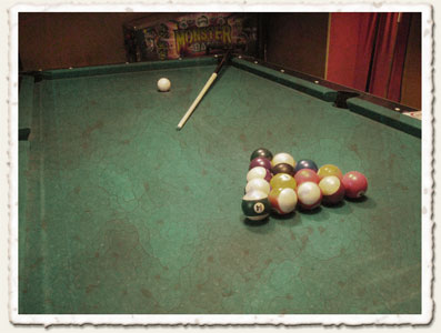 Billard: An unserem 7,5 Fuß-Tisch findet Ihr bei uns immer einen Gegner! Egal ob blutiger Anfänger oder Fortgeschrittener - bei uns steht der Spass an erster Stelle. Gespielt wird im Pitcher normalerweise nach den offiziellen Pool-Regeln, und der Gewinner bleibt am Tisch. |